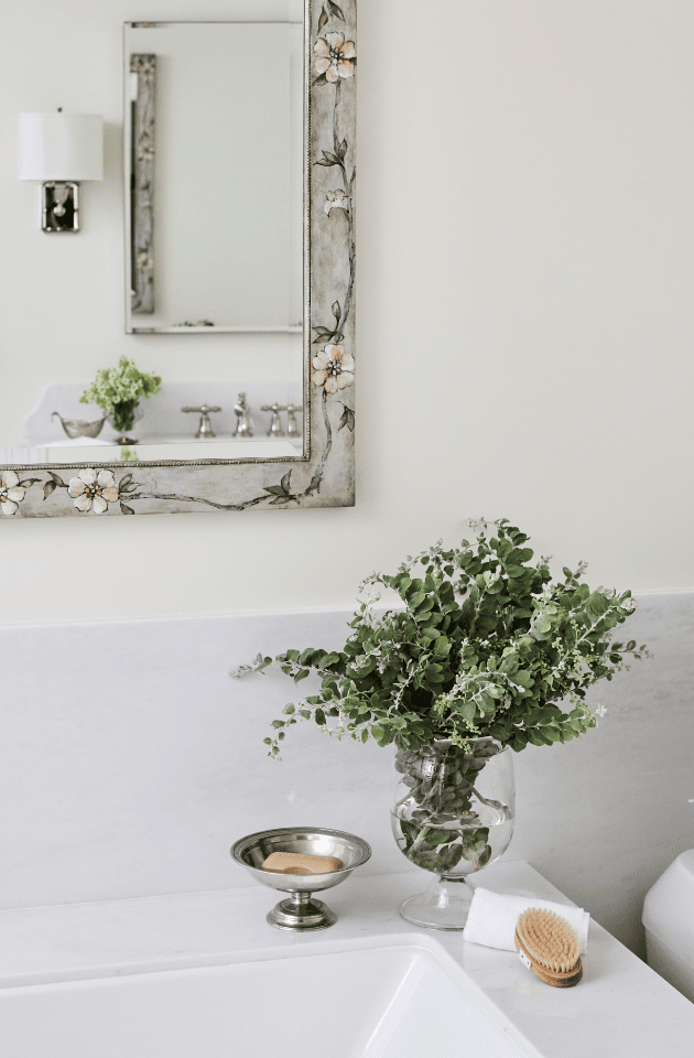 A bathroom remodel project in Brentwood, CA, showcases the seamless fusion of elegance and nature-inspired design, transforming the space into a haven of sophistication. Delicate floral mosaic tiles grace the floors, infusing the room with a sense of beauty and serenity. Paired with exquisite countertops, the bathroom becomes a true sanctuary where artistry and functionality converge.